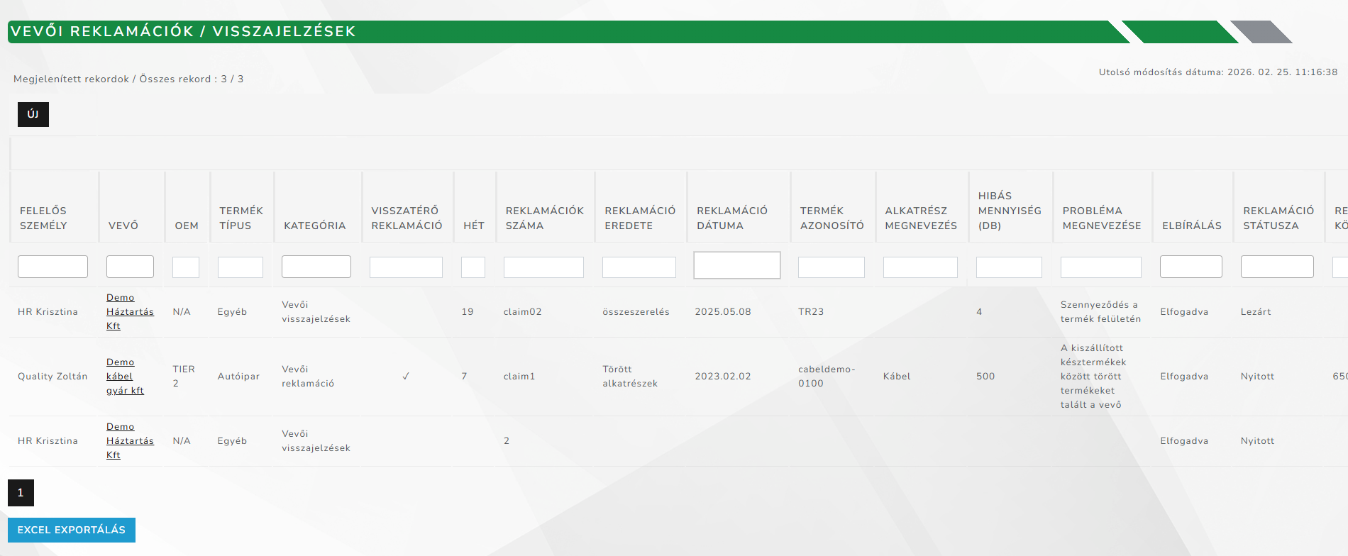 Vevői követelmények nyilvántartása, vevői reklamációk kezelése, beszállítók és szolgáltatók értékelése — egy rendszerben, nyomon követhetően.